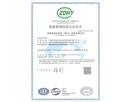 质量管理体系认证证书