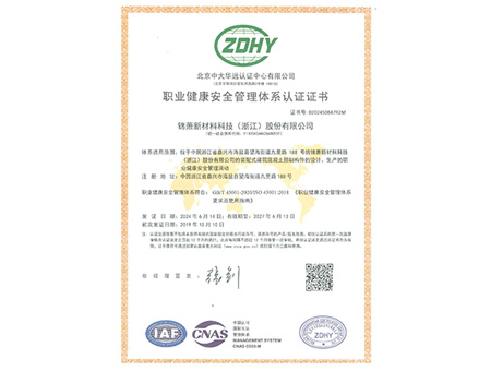 职业健康与安全管理体系认证证书