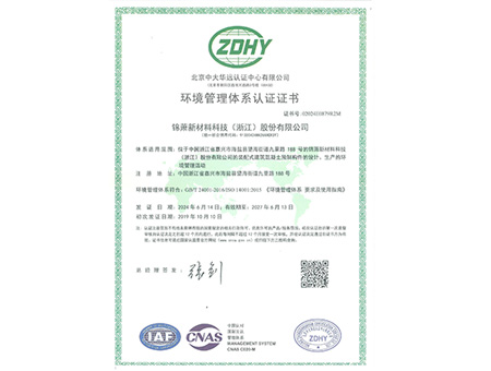 环境管理体系认证证书