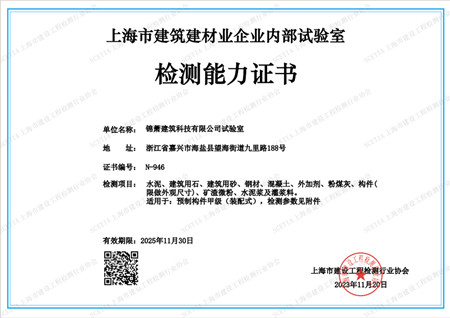 上海市建筑建材业企业内部试验室检测能力证书