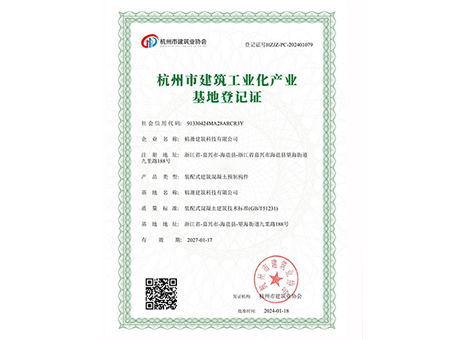 杭州市建筑工业化产业基地登记证
