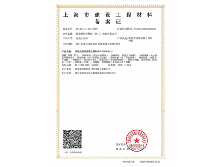 上海市建设工程材料备案证