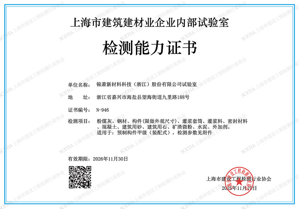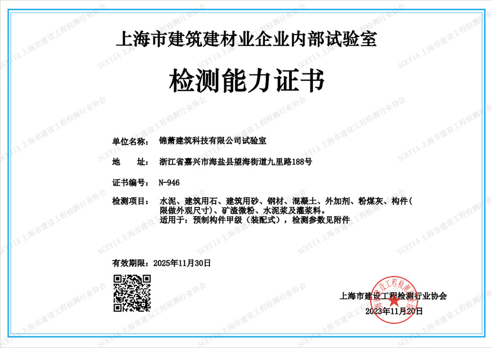 上海市建筑建材业企业内部试验室检测能力证书