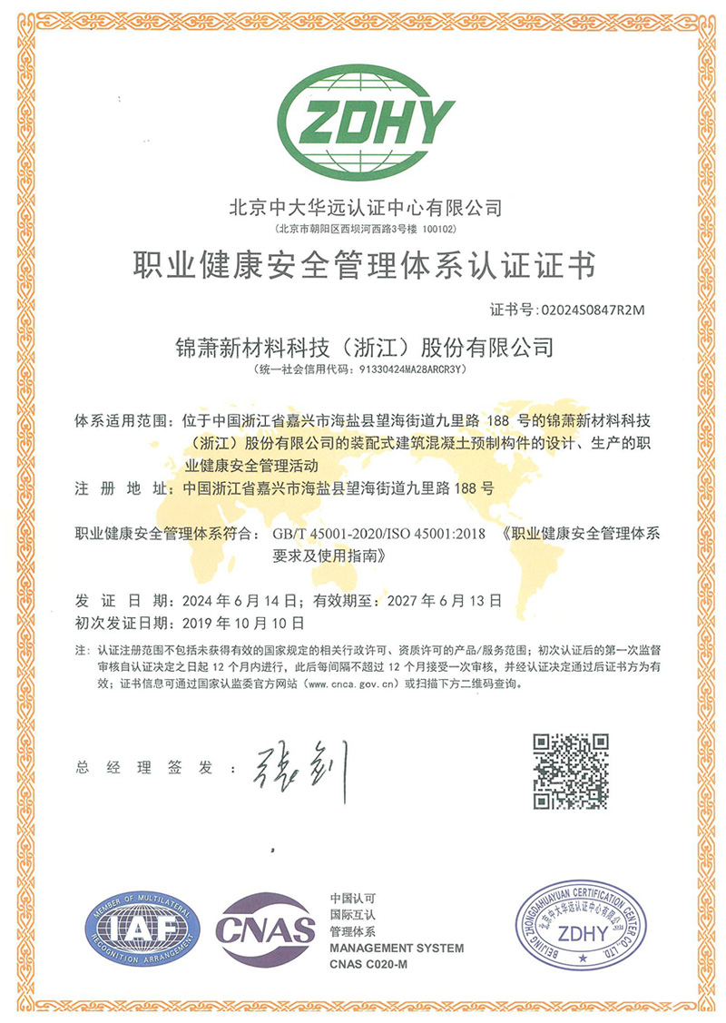 职业健康与安全管理体系认证证书