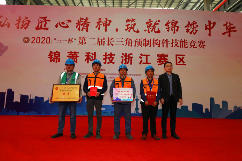 最终,第二届长三角装配式预制构件职业技能竞赛锦萧科技浙江预选赛经过三天紧张、激烈的比赛,顺利完成了各项预定赛程。根据理论知识考核和实际操作技能考核综合比拼,决出前三甲各一名,优胜奖五名,锦萧科技一队获得了浙江赛区的冠军!